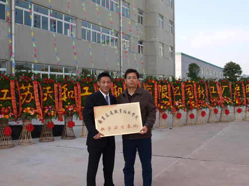 2008年11月18日,我系与江苏天和工程机有限公司达成协议:江苏天和工程机械有限公司成为我院校外实训基地。到目前,我系已经建立校外实训基地已达11个。图为授牌仪式现场。