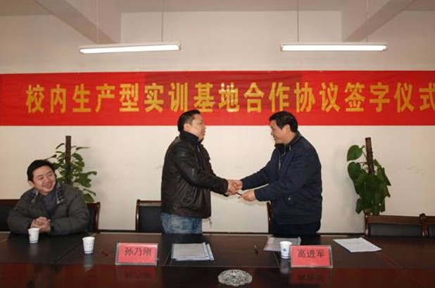 12月31日上午,学院与南京伟亿精密机械制造有限公司建立“校内生产型实训基地”的合作协议签署仪式在明志楼306会议室举行。副院长高进军代表学院在协议书上签字。