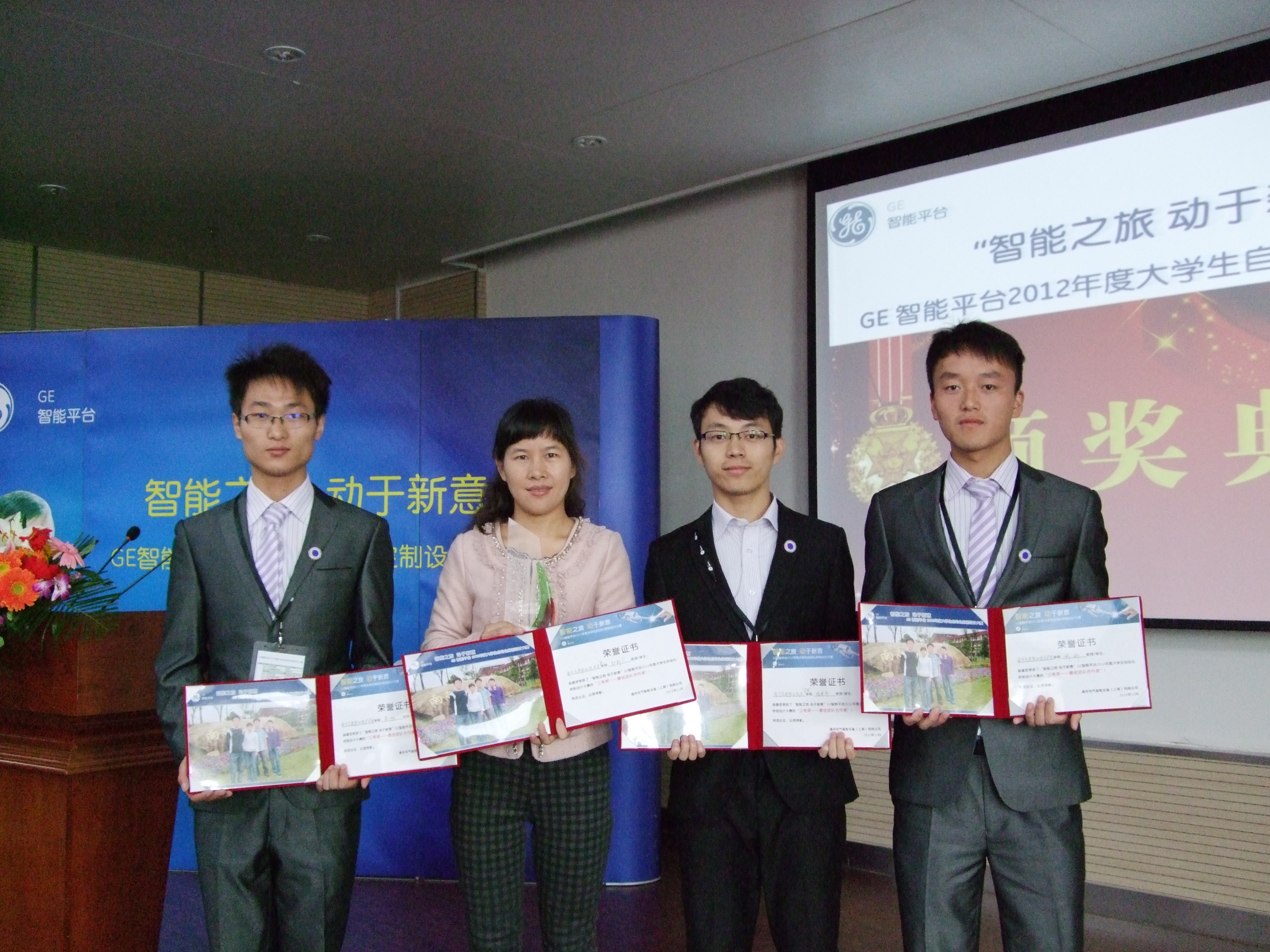 三名队员朱松、刘刚、堵建奇在PPT汇报、工程演示和问题回答三个环节中表现优异,参赛作品从创意、市场前景、IFIX功能的运用开发、画面的美观流畅以及对IFIX5.1在开发中的所提的建议得到了GE市场部和技术部评委的高度认可,最终在8所本科院校9所高职院校共21支代表队中获得了名次。
