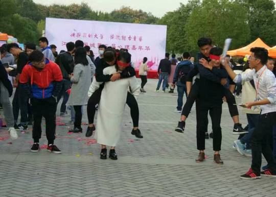 我校展区主要以心理小屋的形式,通过展板展示、书签派发、心理小游戏等活动形式,展示了我校心理健康教育工作的进展与成果以及校大学生心理协会的发展历程。其中我校组织的两个心理互动游戏,“瞎子背瘸子”、“三人行”吸引了众多学生的热情参与,不仅调动了活动现场的气氛,对学校的心理健康教育工作也起到了较好地宣传作用。