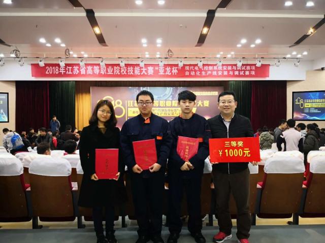 2、“亚龙杯”自动化生产线安装与调试喜获江苏省三等奖。