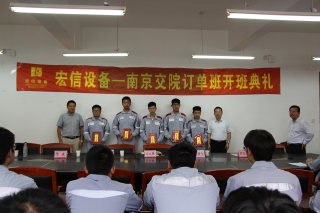 9月10日下午,2018年现代学徒制“南京交院宏信设备班”在明志楼306会议室举行开班典礼。上海宏信设备工程有限公司人力资源部汪江洪总监,上海宏信设备工程有限公司武汉店陈庞店长,学院米永胜院长、陈燕飞副书记、周昊明主任及25名宏信准员工参加此次开班典礼。会议由陈燕飞副书记主持。
