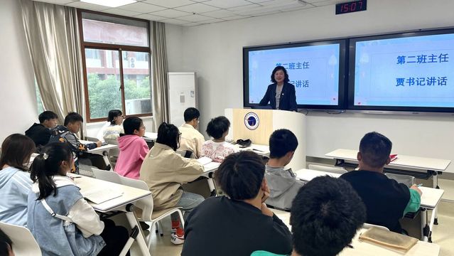贾书记作为第二班主任向大家介绍了自己的经历和“3+2”项目合作院校南京工程学院的情况;结合多名优秀校友的成长经历,引导大家做好个人规划,激励大家努力进取。贾书记对全体同学提出三点期望:第一,要做好个人规划,以学习为第一职责,学懂弄通专业内容;第二,要德才兼修,德智体美劳全面发展,成为一名合格的社会主义接班人和建设者;第三,要积极参加学校各项活动和社会实践活动,全面发展综合素质。