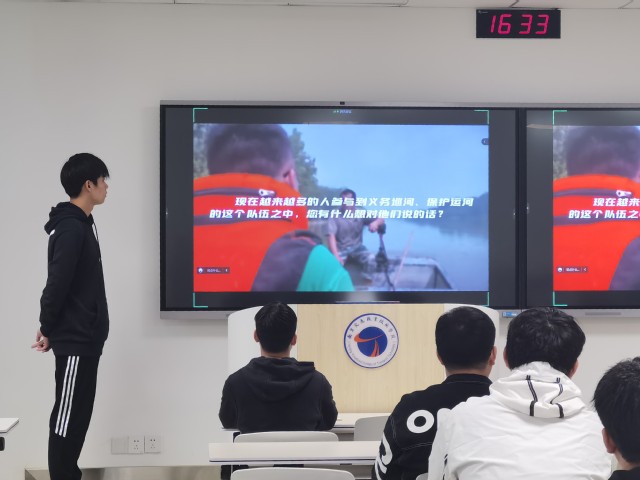 2022年暑期,轨道交通学院召集20余名大学生志愿者,组成“千里运河健步行 红色文脉韵古今”和“沿着运河看江苏 同筑振兴乡村梦”两支实践团队,沿着大运河,在扬州、徐州两地围绕走访新时代乡村、宣讲红色故事、调研非遗文化三大方面开展实践活动。此次分享会上,两支实践团队的学生代表利用PPT就团队简介、实践内容、实践成果及活动意义进行了成果汇报,并分别展示了以《文化调研团队暑期社会实践》和《暑期社会实践之“运河守护者”》为题的实践视频。