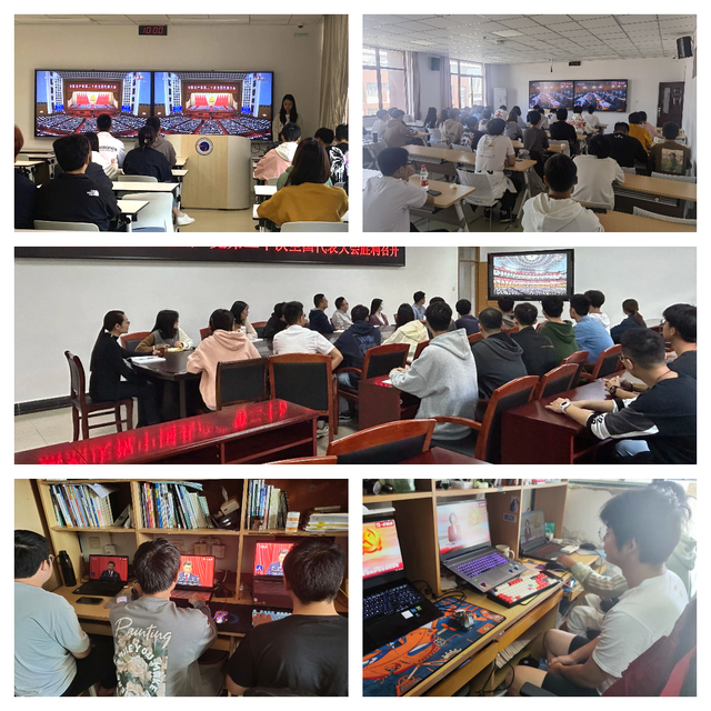 学院精心布置安排,组织全体辅导员、党支部书记和预备党员、发展对象等30人在明志楼308会议室集中收看,大一大二部分学生680人在明志楼教室观看,其余学生1294人在宿舍等场所利用网络观看了大会直播。广大师生通过电视、网络等形式收看大会盛况。