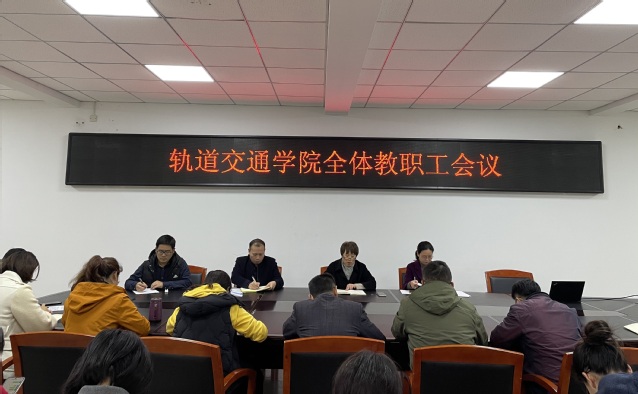 11月23日下午,轨道交通学院在明志楼308会议室召开全体教职工会议,由党总支书记滕兆霞主持。