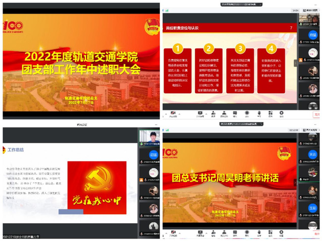 为全面加强基层团组织建设,喜迎党的二十大。2022年7月17日下午,轨道交通学院团总支通过腾讯会议线上召开团支部工作年中述职大会。20、21级全体团支书参会,学院团总支书记周昊明老师、辅导员杨心怡老师出席本次会议。