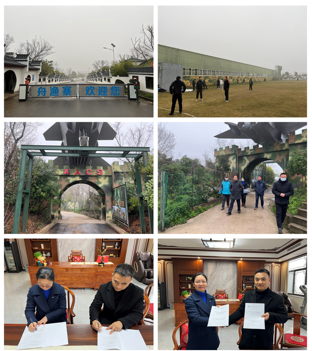 舟渔寨负责人详细介绍了基地建设基本情况,并带领大家实地参观各功能区域。双方就大学生素质拓展基地合作、户外团建活动开展计划等方面进行了深入交流,沈书记与舟渔寨负责人现场签订了《户外素质拓展基地共建协议书》,标志着学院户外素质拓展基地正式成立。