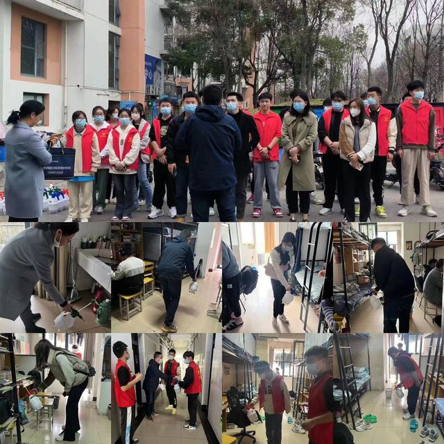 支部书记周昊明统筹组织志愿者准备消杀工具,配制消毒溶液。全体人员统一戴好口罩,按小组分工深入宿舍楼道和每一间学生宿舍,对宿舍地面、阳台、卫生间、洗手池、床底等区域进行了全方位消杀,确保学生宿舍的清洁消毒工作做好、做实。针对近期甲流和春季各类传染病高发情况,提醒学生要高度重视宿舍环境卫生,注意开窗通风,必要时进行消杀,同时加强身体锻炼,确保宿舍安全和身心健康。