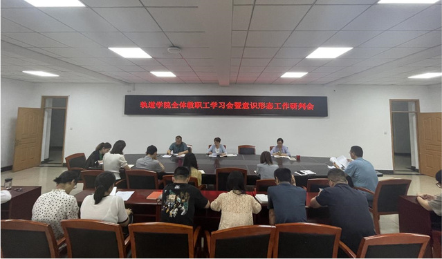 5月31日下午,轨道交通学院在明志楼308召开教职工理论学习会暨意识形态工作研判会,学院全体教师参加会议,党总支书记滕兆霞主持会议。