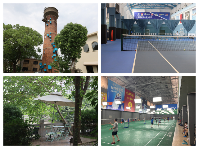 第一站,实践队员们来到了蓝科技文化创意产业园,这里原是常州皮革机械厂的旧址。当队员们进入蓝园后,首先映入眼帘的便是枝繁叶茂的树木,这里的植被覆盖率高达40%,是常州市内的天然小氧吧。跟随着园区负责人的步伐,队员们穿行在蓝园的各类体育、文艺活动馆中,了解这里是如何从“散乱污”走向“新时代的发展前沿”。蓝园以常州“工业记忆”为痕,搭建集文创科技、创意办公、休闲配套等为一体的城市“聚落空间”,从历史和时代的肌理中,保留城市变革高浓度记忆。如今的蓝园已经成为居民休闲娱乐的好去处,羽毛球馆、篮球馆、游泳馆里都充斥着人们的欢声笑语。