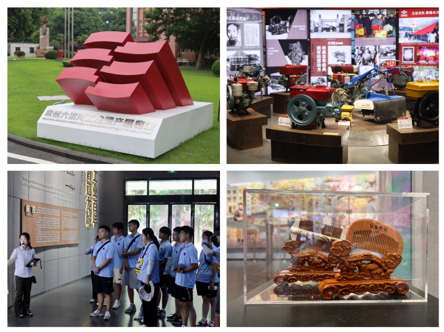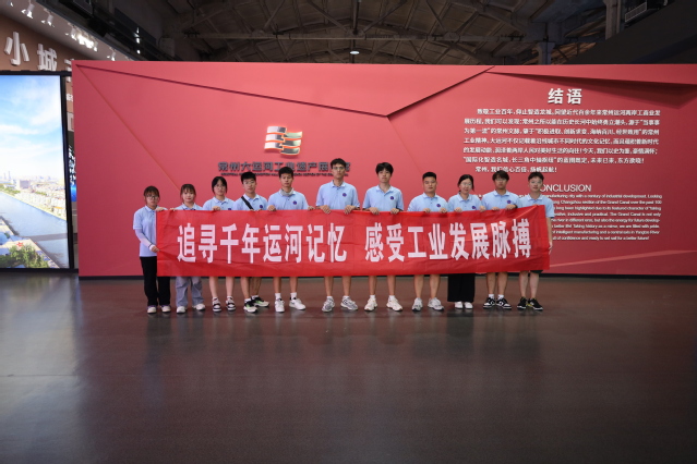 实践的第二站,队员们来到了常州大运河工业遗产展览馆。牛仔布王黑牡丹、千年运河恒源畅、灯芯绒布名天下……当实践队员们走进展览馆时,被这里的一切所震撼。一张张老照片讲述着常州的工业缘起、产业萌芽、发展壮大,一台台“退役”的老设备见证着常州工业品牌的光荣历史。这座由戚机厂原动力车间改造而来的展馆,正通过立体化、系统化的展陈手段,生动展示着百年来常州工业发展的成绩,也引来众多游客参观打卡。