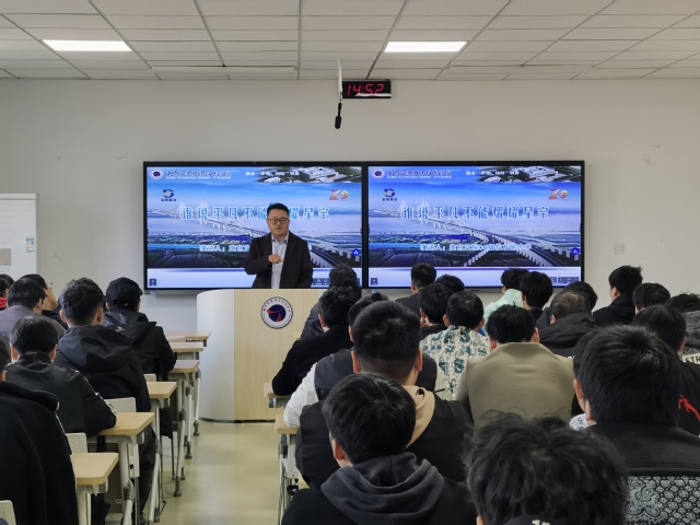 1118日,在喜迎学校70周年校庆之际,为进一步增进母校与校友的紧密联系,鼓励学子学习优秀校友的奋斗事迹,加强学生对专业的了解并激发同学们学习积极性,轨道交通学院邀请2004级优秀校友南京金歌建设工程有限公司副总经理徐才华在明志楼508教室召开了“谁说平凡不能熠耀星空”优秀校友分享报告会。会议由学工办主任周昊明老师主持,150余名学生参加此次分享会。