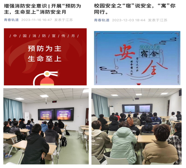 1.开展消防安全集中宣传活动。依托微信公众号,发布多篇消防安全图文推送,在电子屏滚动播放消防安全宣传教育视频,组织学生线下集中观看“高校火灾事故预防与反思”宣传片,积极引导师生关注消防安全,营造浓厚的校园消防安全氛围。