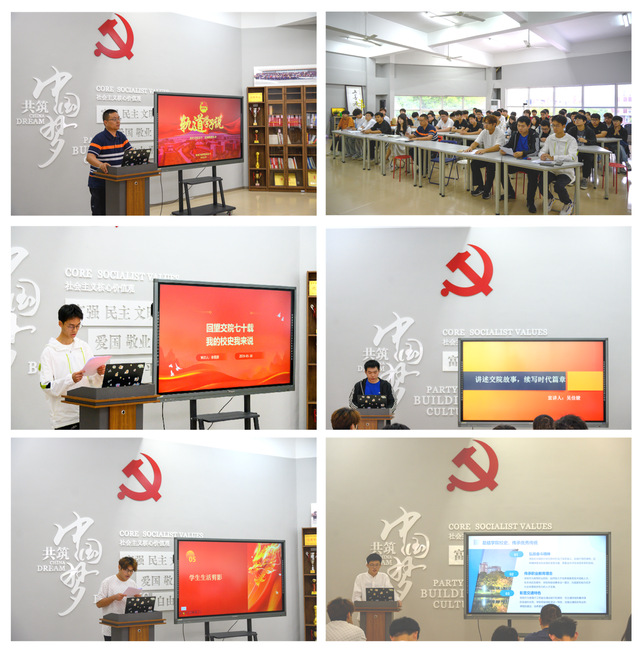 会上,李思源、吴佳骏、陆禹澔、钱禹昂4名同学担任主讲人,分别带来以《回望交院七十载,我的校史我来说》、《讲述交院故事,续写时代篇章》、《校史回顾与展望》、《南京交通职业技术学院校史》为题的分享内容。他们介绍了学校的建设历程,再现了学校的精彩时刻,讲述了自己在交院的成长故事,阐释了学校的瞩目成就离不开一代代交院人的辛勤耕耘,感悟了校史不仅是一段历史的记录,还是一种精神的传承。会上,周昊明老师进行点评。他充分肯定了同学们的分享内容,并鼓励大家在今后继续深入了解校史,做到知校爱校荣校,将来在社会中代表南京交通职业技术学院继续发挥“特别能吃苦、特别能战斗、特别能奉献”的交通人精神。