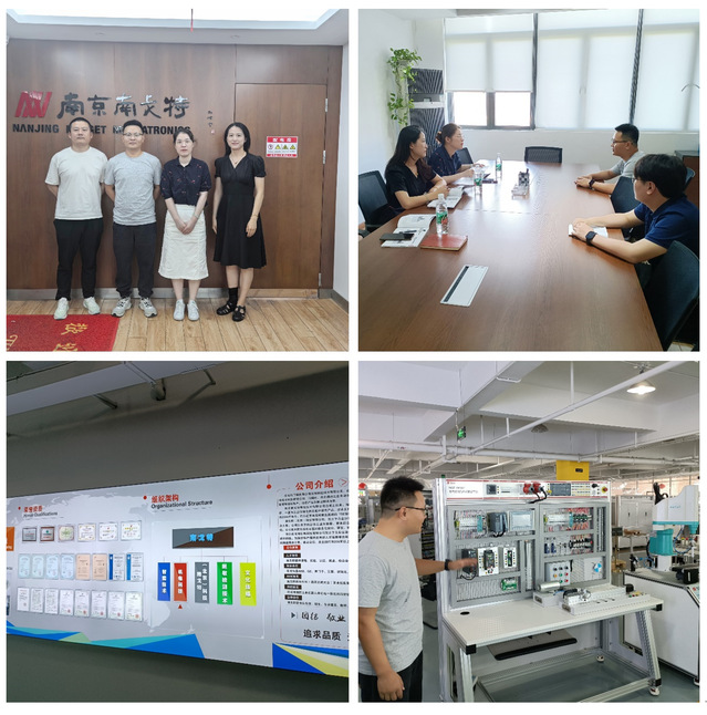 南京南戈特是一家制造型企业,专注于高等教育和职业教育实验设备以及工业自动化产品的设计、研发、制造和销售。企业代表金明将介绍了企业发展历程、主营业务以及企业文化和愿景,并带领校方参观了机电系统集成设计、制造、调试等工作区域。校企双方展开座谈交流,深入探讨了企业人才需求、学校人才培养模式、学生知识体系和技能证书等方面,促进教学和学生就业紧密结合,实现深度融合和一体化发展。