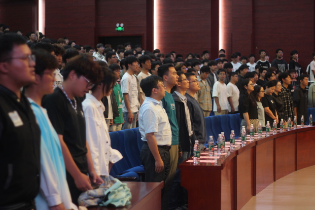 伴随着嘹亮的国歌,2024级新生入学教育大会拉开帷幕。