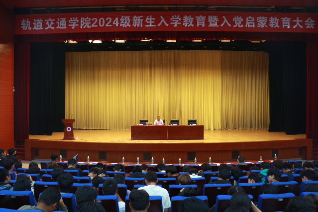 9月27日上午,轨道交通学院党总支在图书馆报告厅举行新生入党启蒙教育大会。大会由学院党总支书记张晓焱同志主讲,2024级全体新生参加会议。