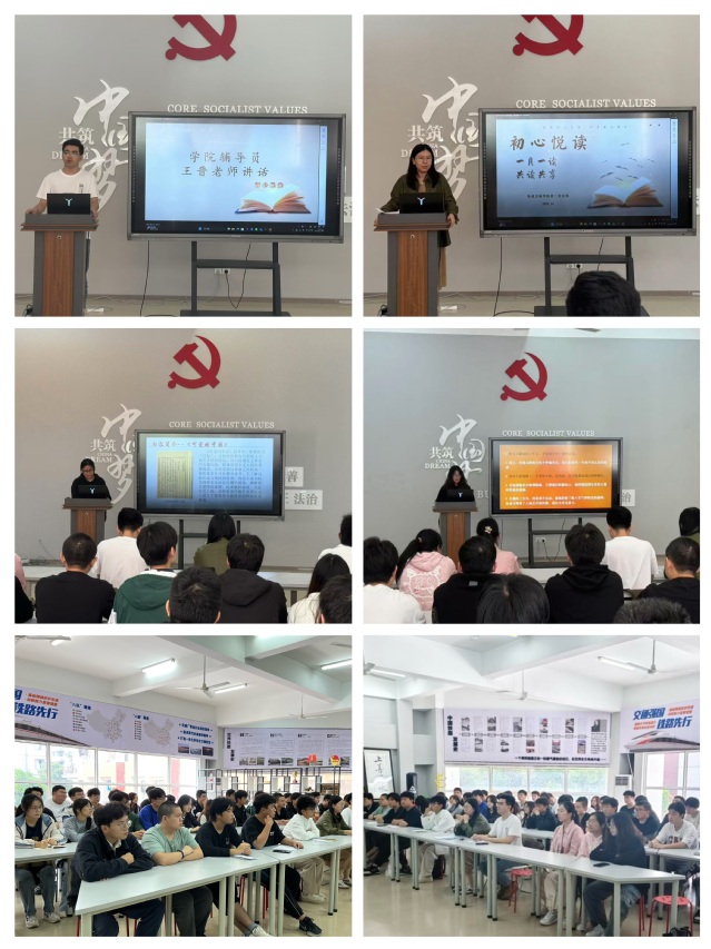 10月18日,轨道交通学院第二党支部在一站式学生社区“南山格苑”工作站开展初心悦读“一月一读,共读共享”分享会,50名入党积极分子参会,第二党支部王晋、王敏老师出席,城轨车辆2301班戴雨林同学主持。