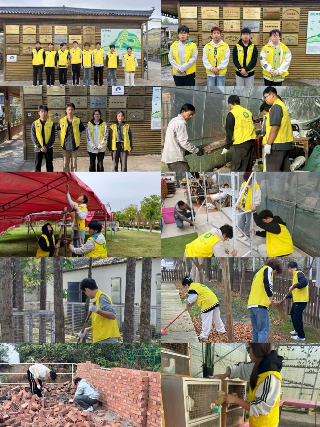 从11月16日开始,志愿服务队成员分批次前往服务性劳动基地--物钟奇园(动物流浪站)开展为期2天的劳动志愿服务活动。从板砖、运砂、搭建动物屋舍到除草、清扫、团建场地准备,每位同学都在大自然中亲身体验劳动的快乐,感受为动物们创建和谐友爱温暖的“家”的喜悦。而成员们的辛勤付出也受到了基地负责人的高度好评。