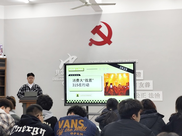 活动伊始,刘鑫锐同学围绕国际消费者权益日的起源、发展历程及社会意义展开专题讲解。主讲人结合典型案例,剖析了消费者常见权益受损场景,并详细解读《中华人民共和国消费者权益保护法》核心条款,强调安全权、知情权、选择权、公平交易权等基本权益的重要性。通过生动的多媒体展示和互动提问,同学们对消费维权的法律依据与实践路径有了系统认知。