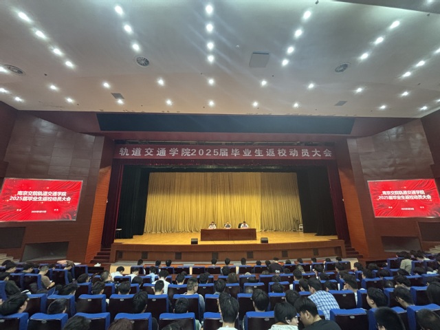 2025年5月12日上午,轨道交通学院2025届毕业生返校动员大会在图书馆报告厅召开。学院党政领导、毕业班班主任、辅导员及677名毕业生参加了返校动员会。
