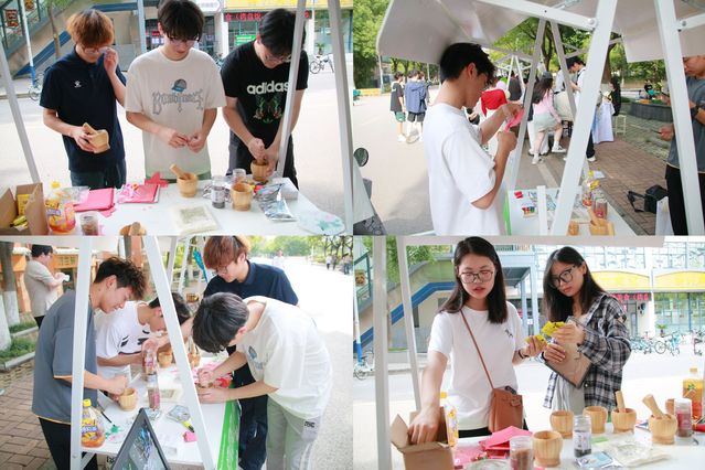 活动现场设置三大特色展位,一是“非遗减压·愤怒米锤”融合传统捣年糕技艺,参与者通过捶打糯米释放压力,兑换软糯糍粑;二是“节气养心茶”提供立夏安神配方茶包(含茉莉、陈皮等),配发节气情绪调节卡片讲解养生智慧;三是“千剪释压”提供纸张书写焦虑,学生书写压力词汇于纹样中,集体撕开象征束缚的纸艺。现场气氛热烈,智能工程机械专业江同学反馈:“捶打年糕时郁结情绪随汗水流走,竹笼碎裂瞬间真切感受到压力释放。”