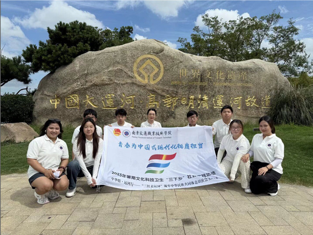 2025年7月9日,“三红走运河”暑期社会实践团队来到高邮明清运河故道与抗日战争最后一役文化园继续探寻民族团结的历史与红色印记。