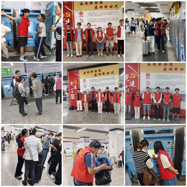 轨道交通学院学生们依托南京南站博爱岛提供“便民服务”,服务时长四个小时,身穿醒目的红色马甲的志愿者们活跃在南京南站的各个角落。志愿者们主要负责:帮助乘客购买地铁单程票、寄存行李、指引方向、维持车站秩序以及帮助行动不便的老年人和残疾人进站等。面对客流量高峰时段的密集问询,志愿者们始终保持热情微笑,用清晰的指引和耐心地解答,缓解了车站的服务压力,成为车站里一道亮眼的“青春风景线”。