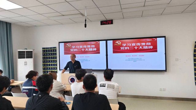 为深入学习贯彻党的二十大精神,进一步增强师生的历史使命感和责任感,进一步铭记光辉历史,传承红色基因,在纪念中国人民抗日战争暨世界反法西斯战争胜利80周年的重要时刻,南京交通职业技术学院关心下一代工作委员会老教师、老党员蔡彭骑走进轨道交通学院,给轨道学子开展了一堂生动而深刻的主题党课,引导广大青年从伟大抗战精神中汲取前行力量。