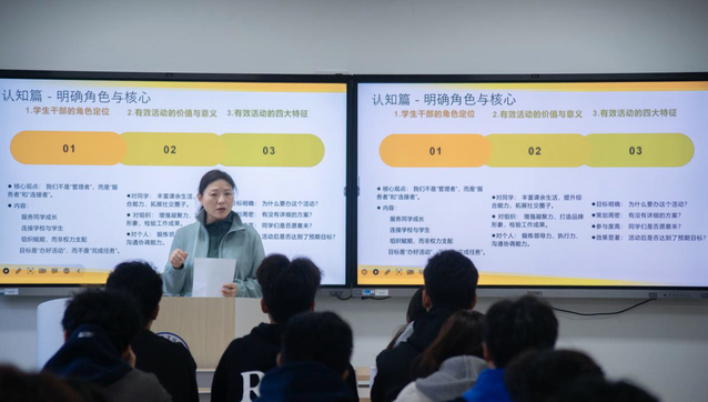 讲座中,侍元元老师结合丰富实例,深入剖析了学生活动从策划到落地的全过程。重点强调:精准定位同学们的需求是活动成功的前提,周密详尽的策划方案是活动成功的核心保障,而高效的团队协作与流畅的现场执行则是活动的关键环节。侍老师鼓励学生干部要勇于创新活动形式,充分利用新媒体进行宣传,并做好活动后的复盘总结,以持续提升工作效能。