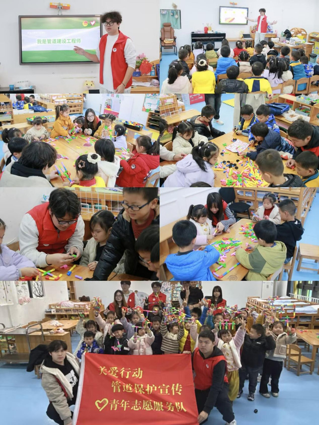 为积极响应国家能源安全战略的号召,2025年12月26日,轨道交通学院“护航童行”志愿服务团队在保利樾幼儿园开展“我是管道建设工程师”志愿服务活动。本次活动以能源安全与管道保护为核心主题,志愿者通过多元教学科普管道知识,引导孩子识价值、悟安全、树立主动护管意识。